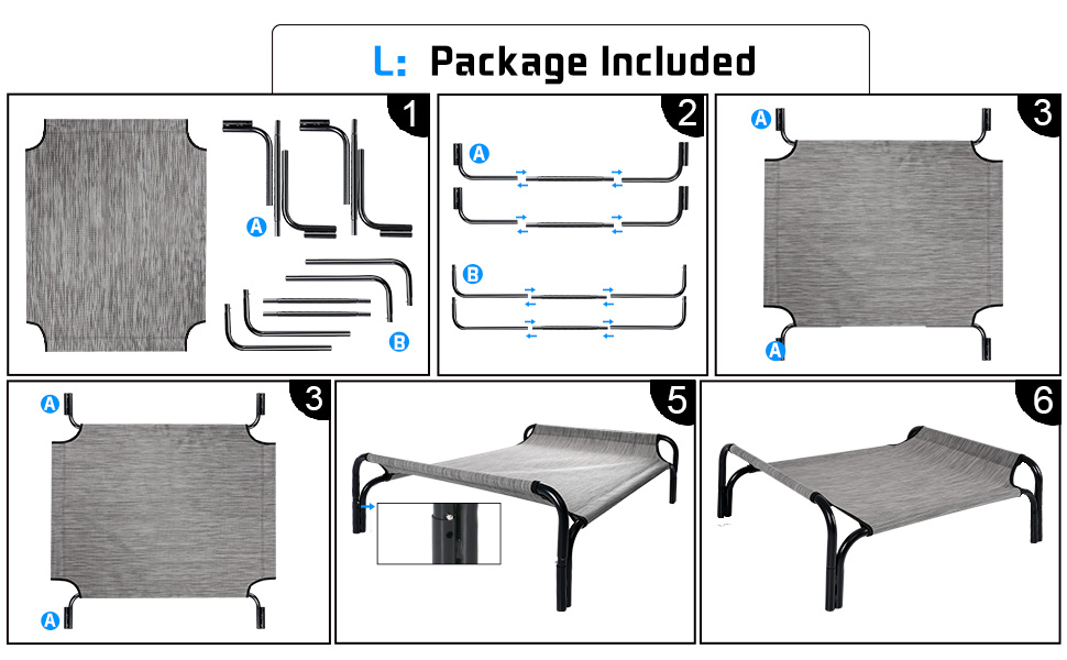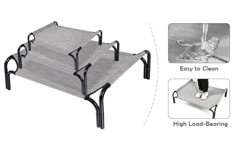 [Quick Assembly] The PetEase outdoor dog bed requires no screws or wrenches for assembly. The lightweight design of this elevated dog bed provides increased portability and makes picnic, camping, training scenarios and travel simple.