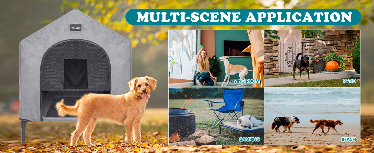 【2 in 1 DOG HOUSE / DOG BED】Raised dog house keep your pet off the cold damp indoor floor, preventing arthritis down the road. When your pup resting outside, the heat and humidity no longer bother him or her while protecting the skin from the scraping of the grass.The canopy can be removed to make the dog shelter to be a elevated dog bed, provide dogs with a comfortable place to enjoy indoor time.