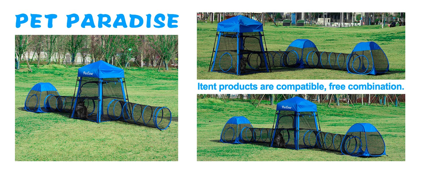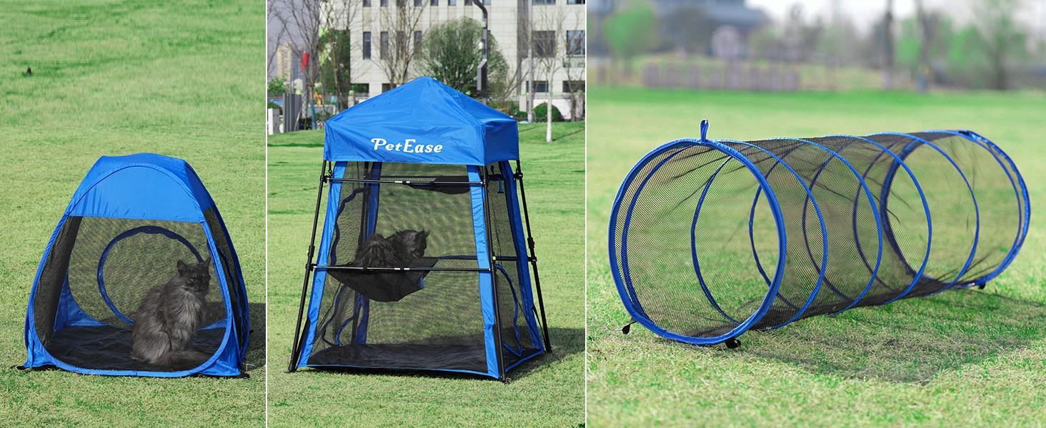 FOLDABLE & LIGHT:Crafted with a portable mesh design,this product can be easily folded and installed to meet your travel and storage needs.While the pet tower tent necessitates assembly, the pet tunnel and pet cube boast pop-up structures, instantly available as soon as they're unsealed.