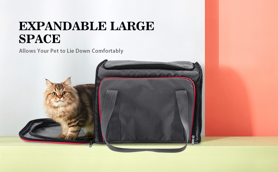 [ EXPANDABLE SOFT-SIDE CARRIER ] The size of carrier is 17x11x11 inches and and expandable size is 20x17x11 inches by expanding the mesh windows,available for pets up to 13lbs .Please measure your pet before booking.