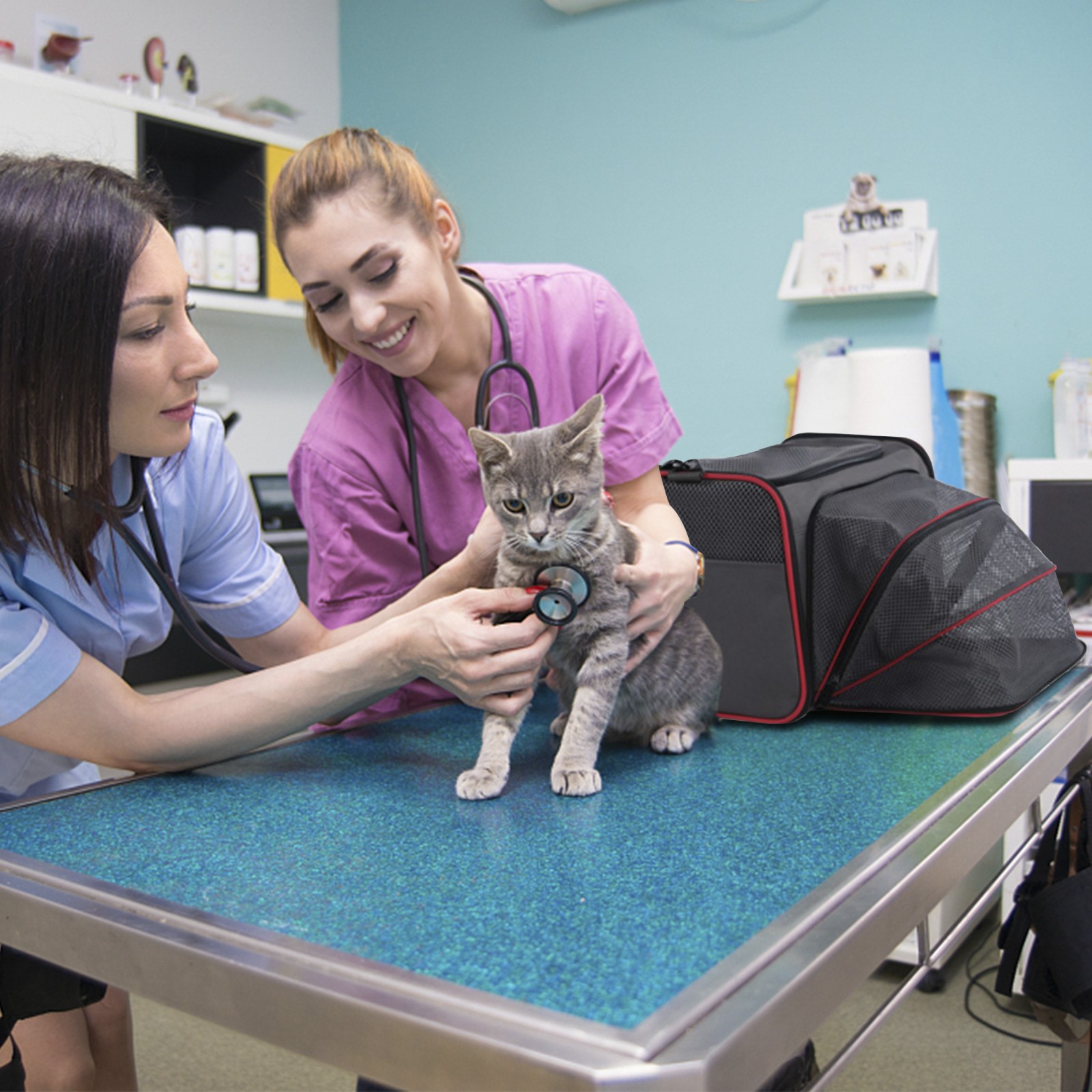[ Convenient side pocket ] Large storage pocket on the side provides more space for pet food, snacks, veterinary paperwork or outdoor items (documents/toys/hygiene bags/wipes/catnip). Suitable for travel, pet clinic, outdoor activities, etc.